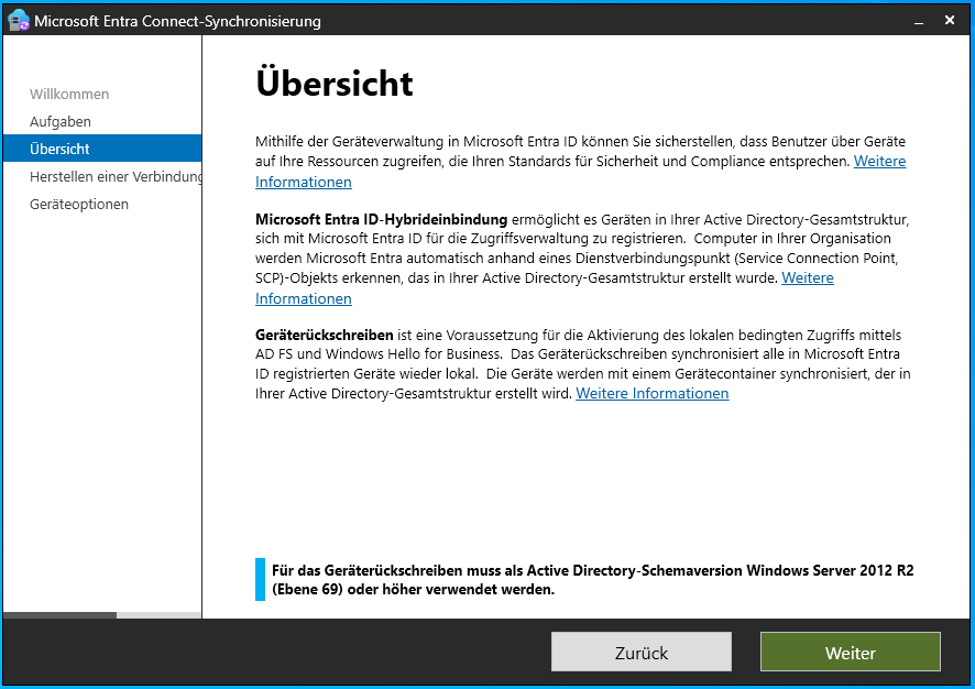 Das „Gerätezurückschreiben“ (Device Writeback) ist eine Funktion in „Microsoft Entra ID Connect“, mit der Geräteinformationen aus der Cloud (Microsoft Entra ID) zurück in das lokale Active Directory (AD) geschrieben werden können.