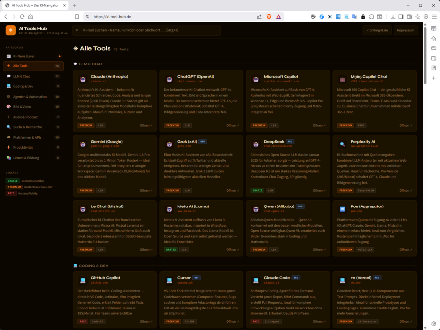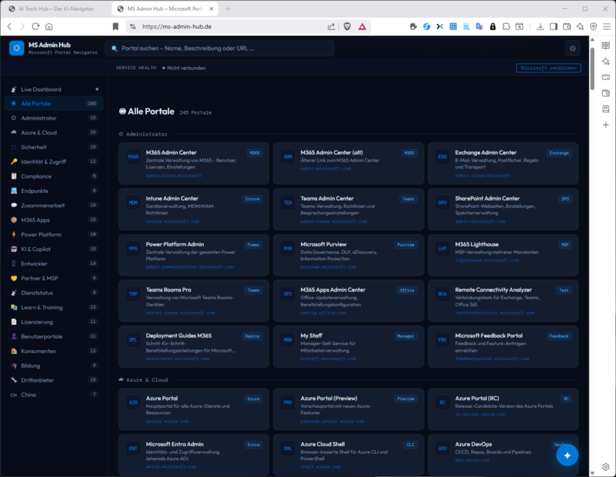 Einsteiger finden hier einen zentralen Einstiegspunkt in die Welt der Konfiguration und Verwaltung von Microsoft-Cloud-Diensten sowie in die KI-Werkzeuglandschaft, sowie eine hilfreiche Bewertung von inzwischen hunderten von Portalen, sodass durch diese spezielle Art der Kategorisierung mehr oder weniger automatisch auch ein gewisses Verständnis für die Einordnung und Fähigkeiten der Tools-Landscape entstehen kann.