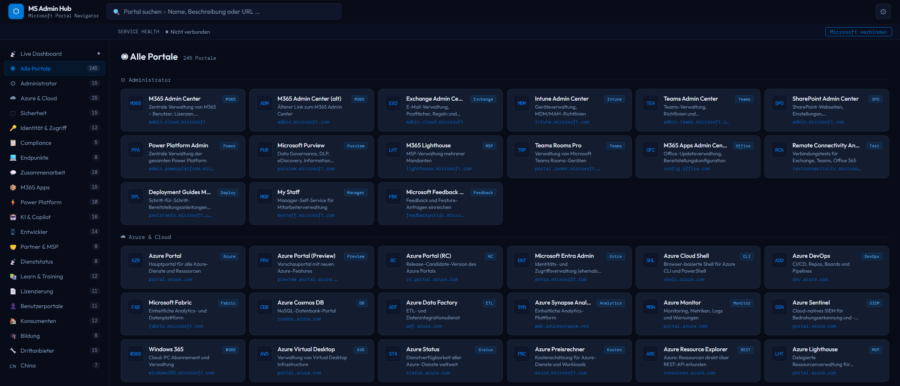 Stets auf der Suche nach dem passenden Microsoft-Admin-Portal? Zugegeben, es gibt zahlreiche Websites, wie mein neuer Wurf „MS Admin Hub„. Da bilde ich mich nichts darauf ein. Der Entwurf ist aus einem Entwicklungs-Projekt im Rahmen eines Azure-Kurses hervorgegangen. Aber das Design ist gelungen und das Konzept bietet noch Potenzial zum Ausbau.